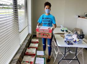 Mayor Elliott, representing Gang Free, Inc., along with students and staff at Pinkston Street Elementary School, and community members celebrate the opening of Paws of Hope Food Pantry. The food pantry targets displaced students and their families.